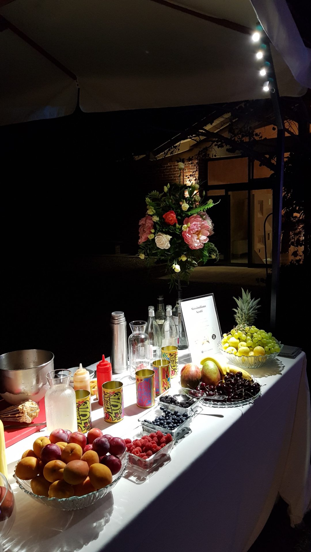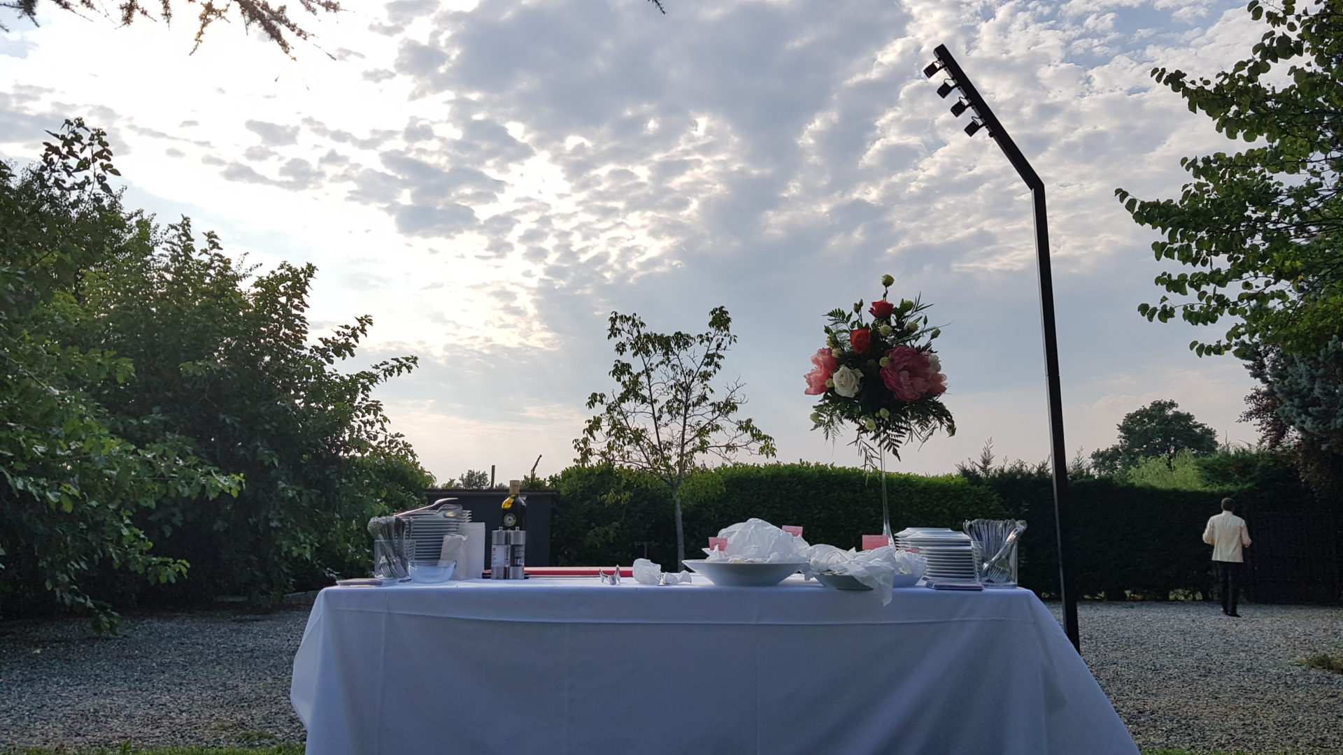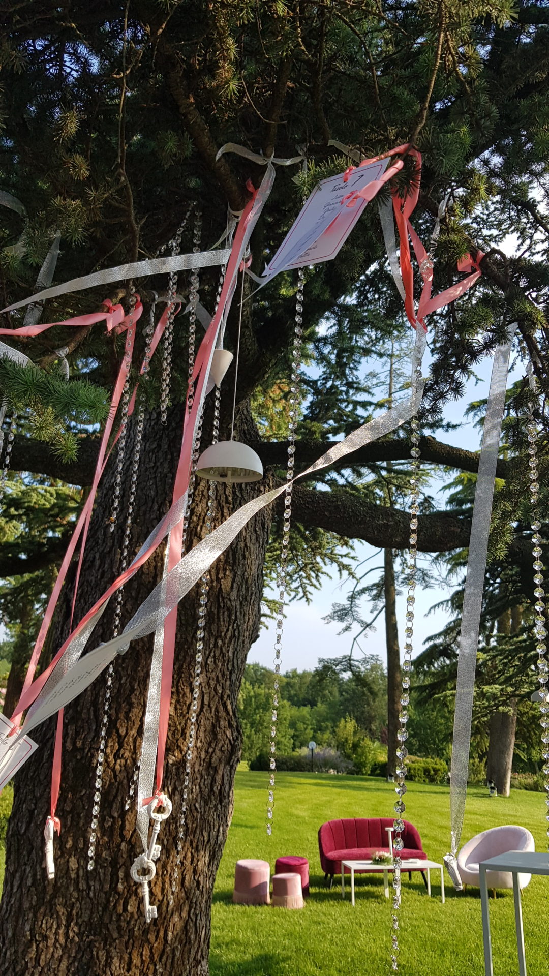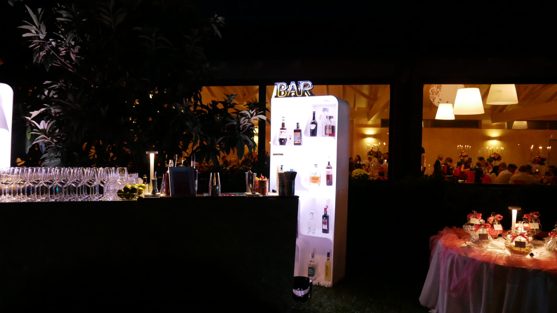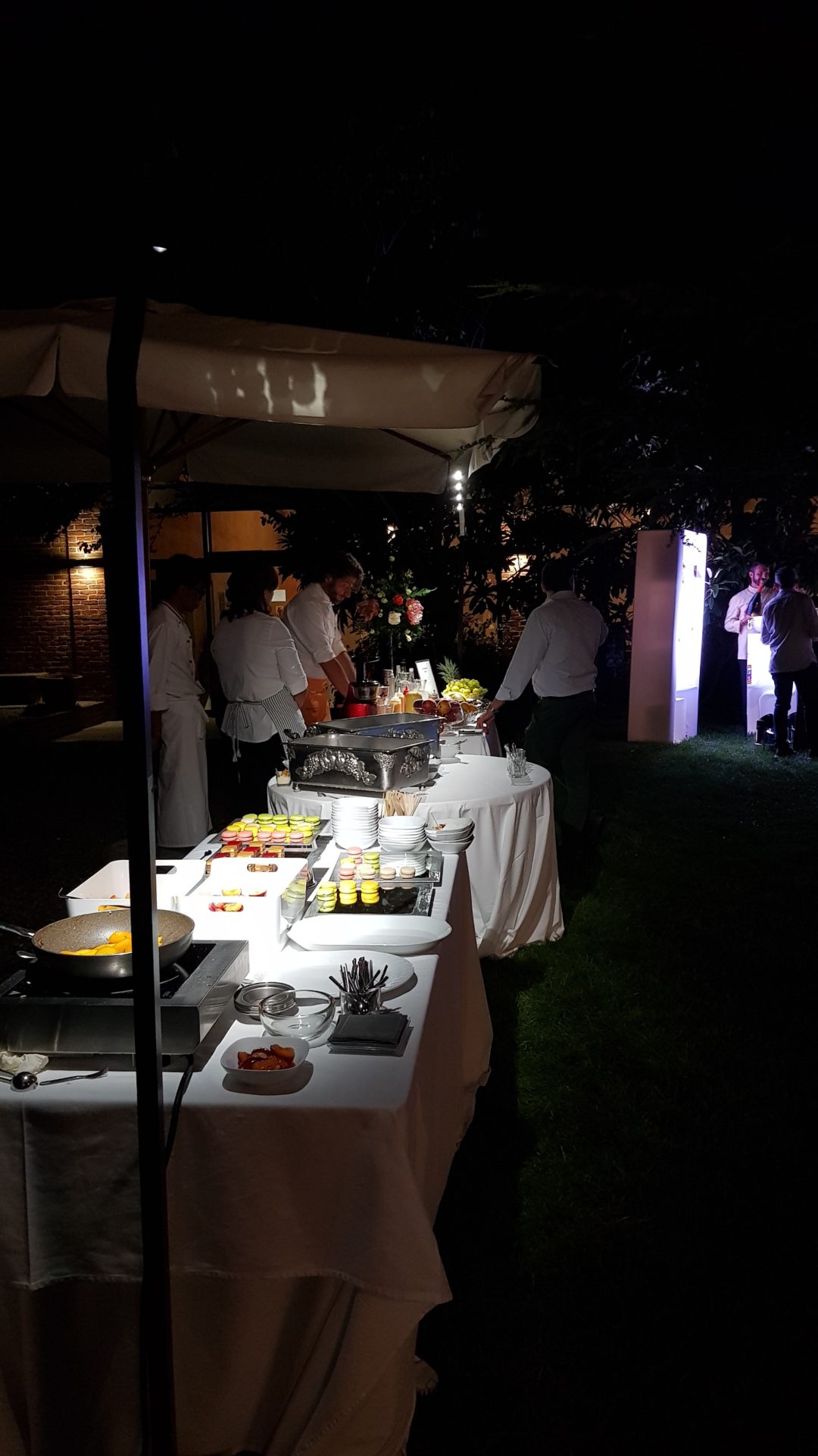 Per creare la giusta atmosfera, abbiamo utilizzato i prodotti della linea Serendipity by Family Studio: diverse tipologie di fari per l’illuminazione del castello e del parco, Tecno Par 2 e centrotavola Tetatet per i buffet e centrotavola Piombo a sospensione, nella loro versione bianca, per creare dei punti luce tra le fronde degli alberi.